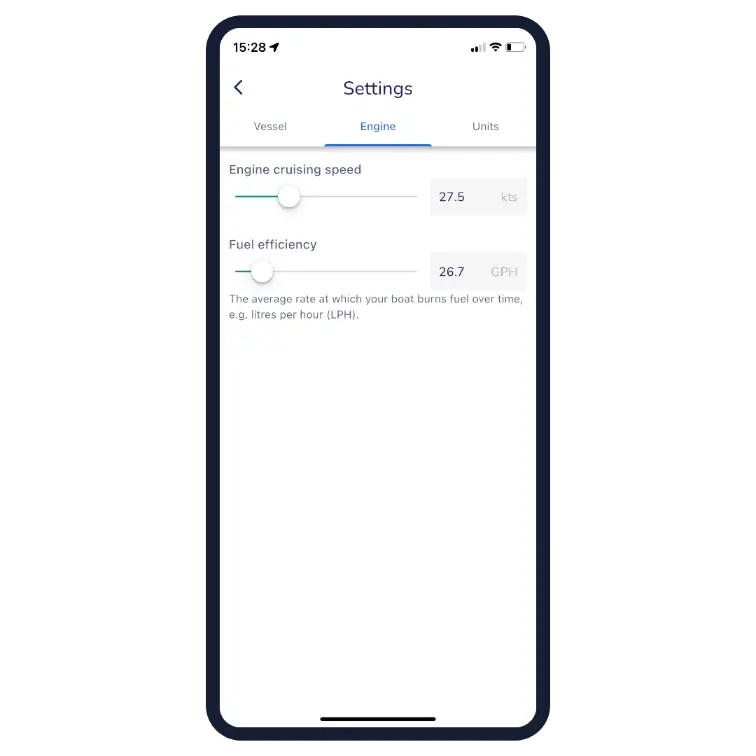 No one likes that feeling of potentially running out of fuel. That’s why our custom boat settings let you estimate fuel usage for your intended route based on your engine cruising speed and boat fuel efficiency.