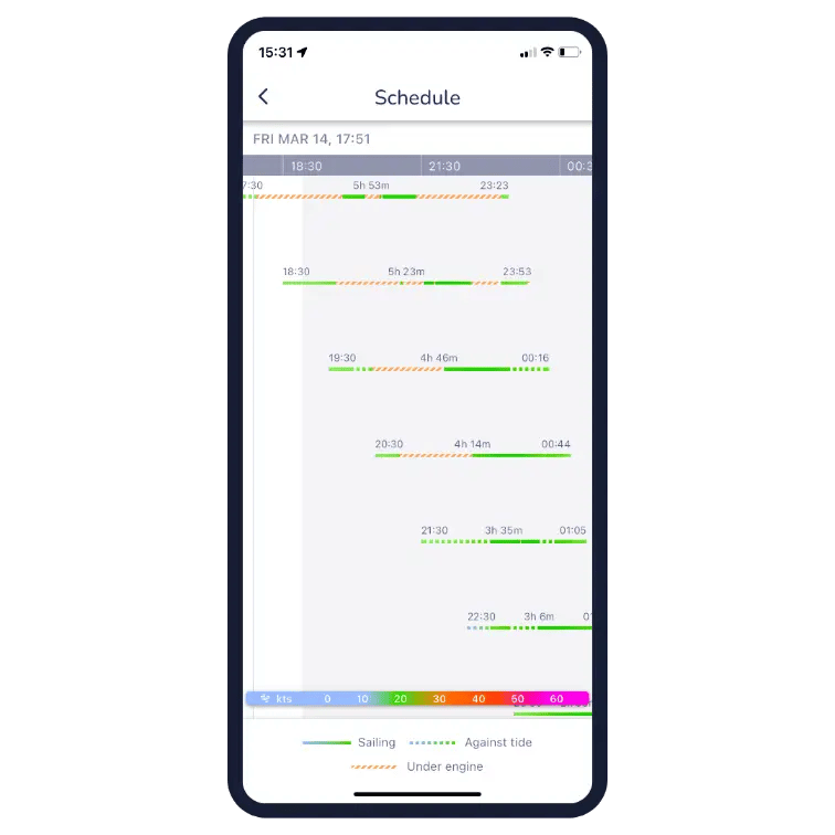 Smart routing calculates the optimal journey by factoring in every detail that matters, such as your planned departure time, boat specifications, chart data, wind, weather, and tides. This provides a clear, reliable, and comprehensive passage plan tailored to you.